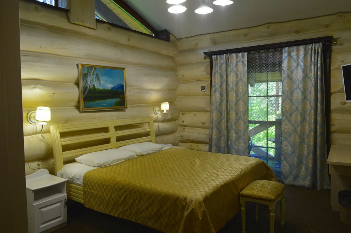 В номере: двуспальная кровать, или две односпальных, наличие доп. места, полотенца, чайник, санузел, телевизор, мини-холодильник, панорамное окно, вид на Катунь и на сосновый бор